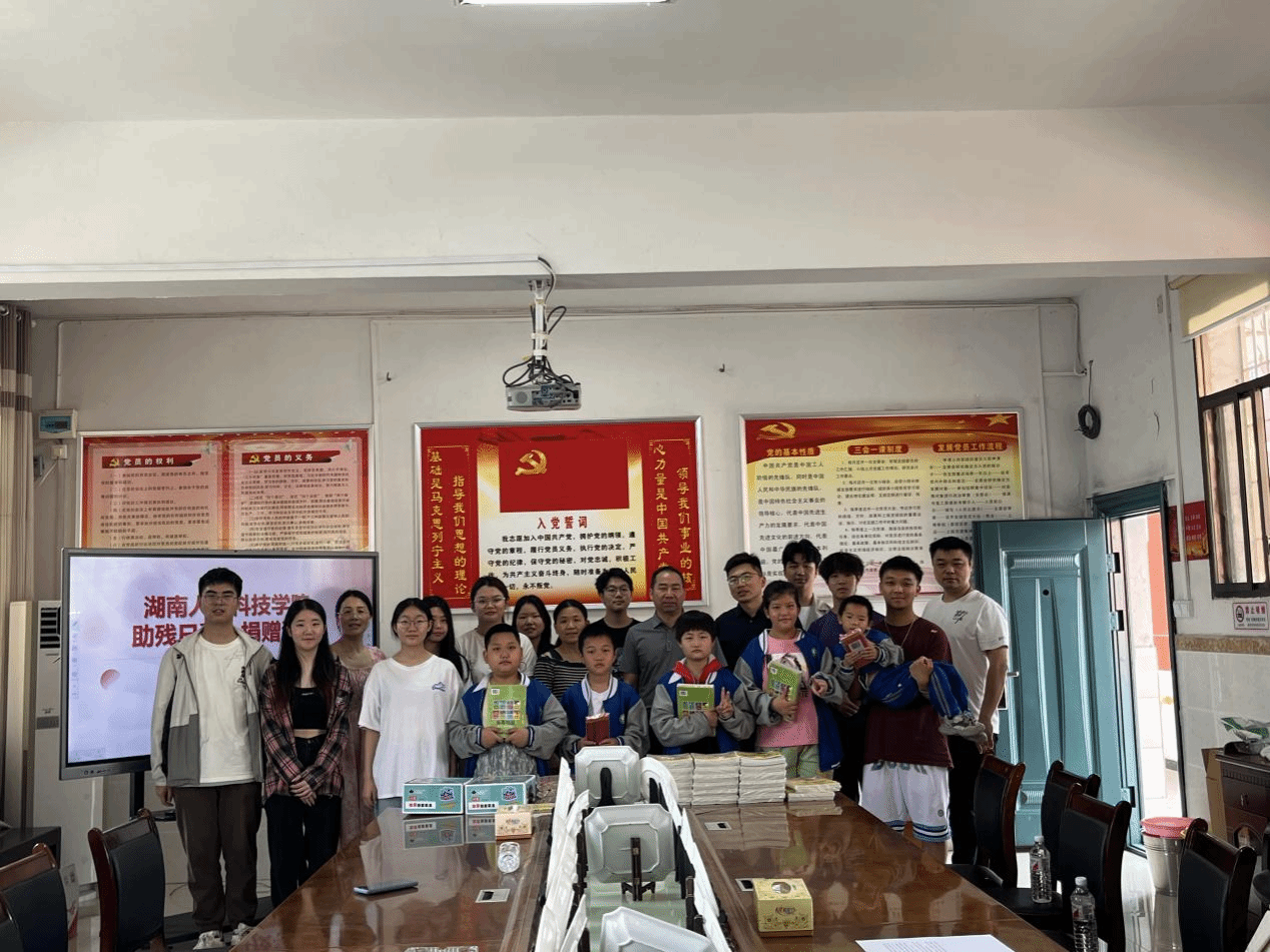 在全国助残日即将来临之际,2024年5月15日上午,今年会联合娄底市特殊教育学校开展了以“真情暖童心,相护伴成长”为主题的爱心捐赠活动。今年会校团委兼职副书记肖毅、教育学院辅导员文思婕、特殊教育学校党支部副书记杨德清、德育副校长周健、政教负责人杨芳和德育干事廖勋建以及双方学校的学生代表出席了本次活动。