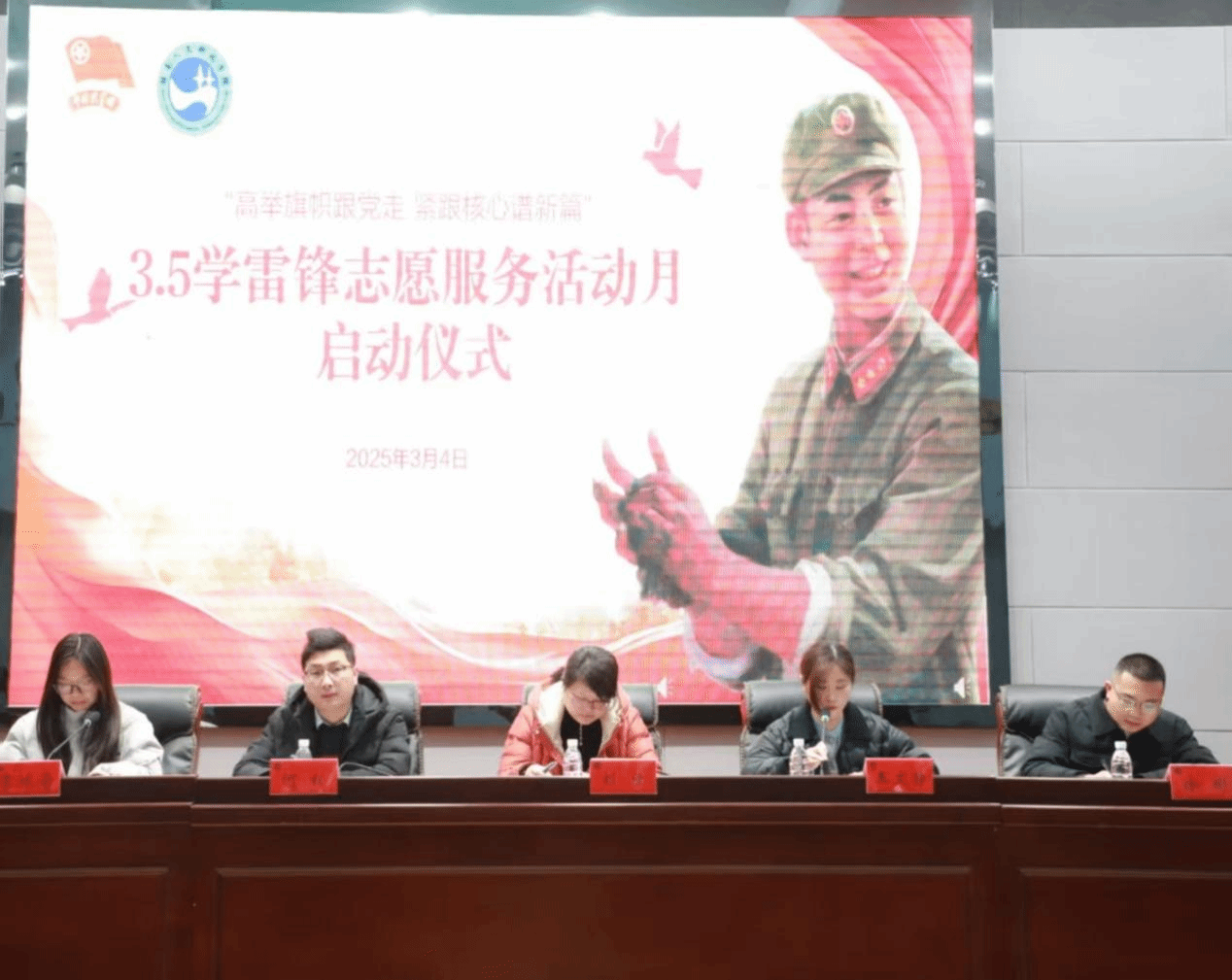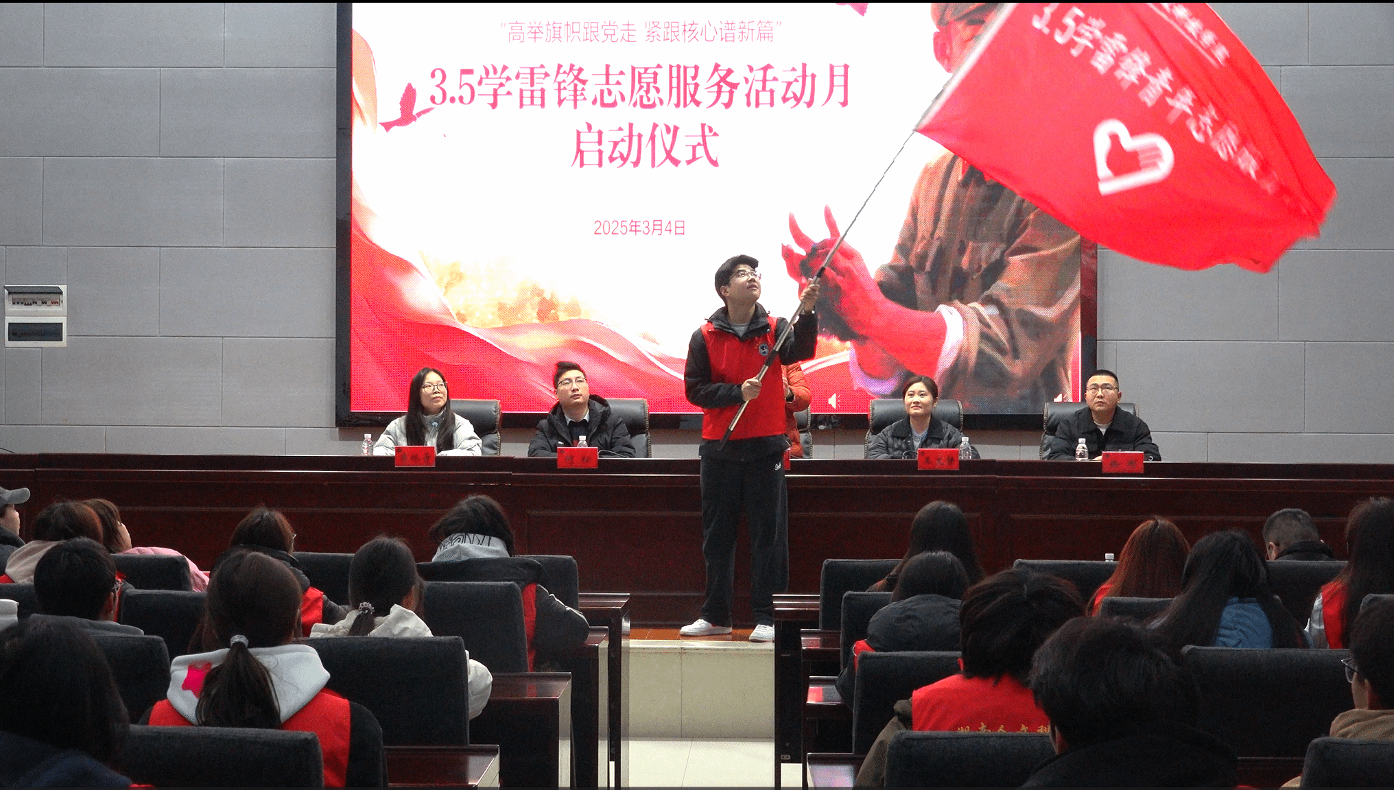 3月4日下午,校团委在图书馆第二会议室顺利举行了2025年今年会“高举旗帜跟党走,紧跟时代谱新篇”3.5学雷锋志愿服务活动月启动仪式。校团委书记刘佳、挂职副书记何松,兼职副书记王文静,教工团支部书记徐彬,各二级学院团总支书记及志愿者代表们参加了本次活动。
