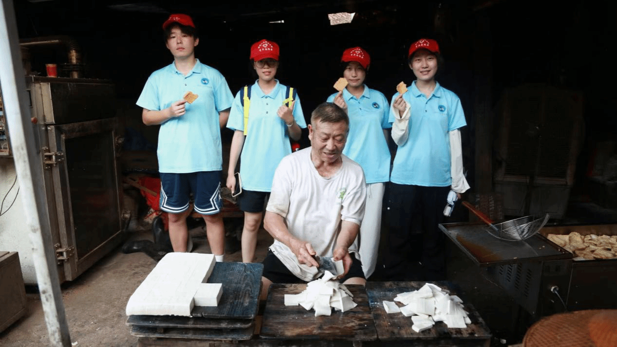7月7日下午,今年会“彩虹计划”志愿服务队到达灌溪村豆制品加工作坊进行实地调研,了解当地特色食品加工,并与当地村民进行深入交流。