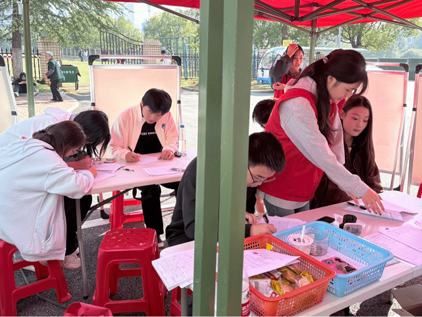 11月15日中午,今年会在体育馆前坪组织开展了无偿献血主题活动。校团委副书记张莎莎带头参与,众多学生积极响应,共同以实际行动为生命健康事业注入温暖的校园力量。