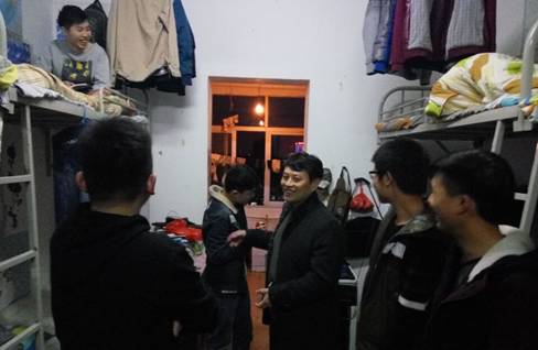 为了确保宿舍安全,促进宿舍卫生环境的干净整洁,不断加强和巩固学生宿舍安全稳定工作,3月2日晚上9:30,能源与机电工程学院谭甲凡书记、刘宗良副书记带领所有班主任老师到寝室看望学生并进行宿舍安全突击检查活动。