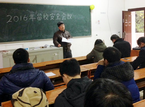 会议由系副书记刘宗良主持,刘书记对寒假留校学生认真而全面地进行了安全教育,并再三叮嘱学生们寒假期间要注意人身安全、财产安全及交通安全等,告诫他们千万不能在宿舍使用大功率及不要晚上单独外出。