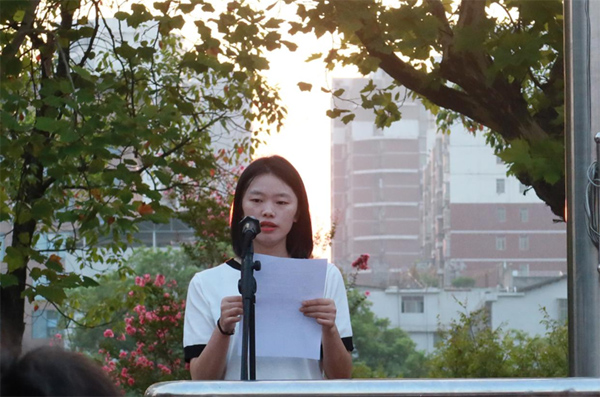 在激昂雄壮的国歌声中,鲜艳的五星红旗迎风展开,缓缓上升。全体新生以笔直的军姿站立,挺拔如松,心怀豪情,双眼注视五星红旗升到杆顶。2022级材料成型及控制工程1班刘梦圆同学和19级机械制造及其自动化1班刘莹分别作为新、老生代表发言,激励新生们铭记历史、居安思危、以史为鉴,在这千帆竞发,百舸争流的时代,拿出敢为人先的闯劲,一往无前的拼劲,久久为功的韧劲,为实现伟大复兴的中国梦而不懈奋斗!随后,石海、伍铁斌向新生们介绍了学院学生管理、教学、科研、实习、实训等各项规章制度并从防盗窃、防诈骗、防抢劫、消防安全、疫情防控等方面进行了安全提示及相关安全防范措施讲解,并要求同学们严格遵守学校各项规章制度,确保大学四年安全、愉快、顺利地度过。彭广威、王舒向新生们介绍了学院各学科专业学习内容与模式并期望同学们尽快适应大学生活,不负韶华、不负青春,积极充实学习生活的每一天。最后,胡东致辞对2022级新生的到来表示热烈的欢迎和真诚的祝贺并就学院的整体情况进行了详细的介绍,同时希望新生们要有“骨气、底气、正气”,常怀“感恩之心、进取之心、羞耻之心”,并祝愿同学们度过精彩愉快而硕果累累的大学生活。谢常清代表学院向全体新生寄语,希望同学们既要高瞻远瞩,做仰望星空的人,更要脚踏实地,做埋头苦干的人,从现在做起,从自己做起,努力践行时代重托,肩负起新时代大学生的责任与使命。(文:邓景文图:院学生会宣传部)、(一审:邓景文、二审:肖毅、三审:石海)