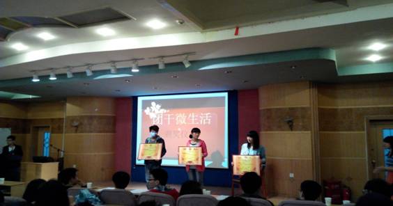 为了更好的开展系团总支工作,增进团干的感情,4月25日晚,机电工程系团总支在养根楼报告厅举行了“团干微生活”,通过团干们自己制作的视频、PPT等微作品展示大家在团总支的点点滴滴。活动设置了若干奖项,对制作精美有内涵的微作品进行了奖励。