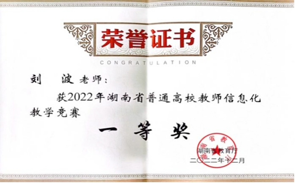 刘波老师获2022年湖南省普通高校教师信息化教学竞赛一等奖