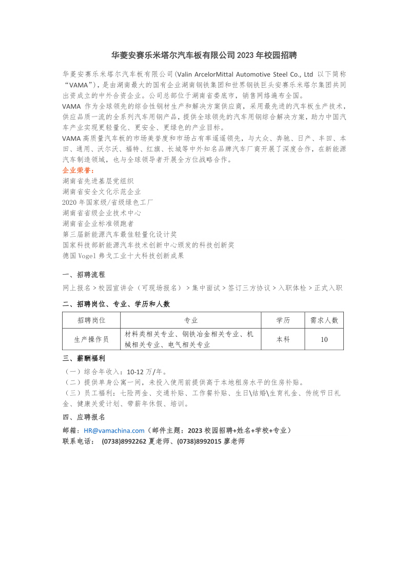 华菱安赛乐米塔尔汽车板有限公司2023年校园招聘