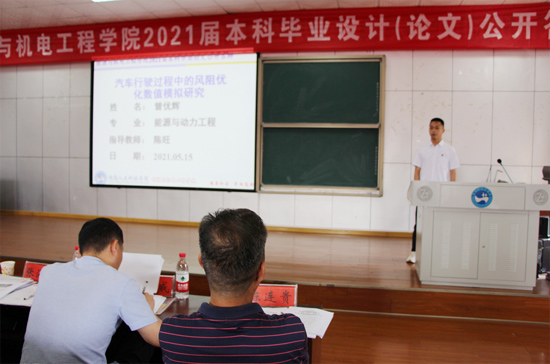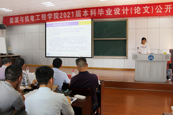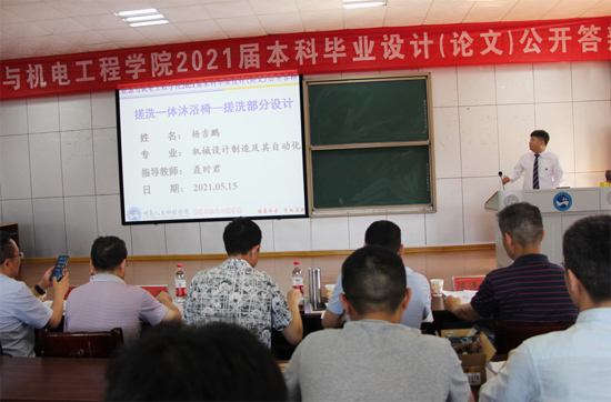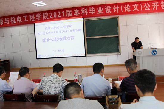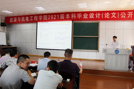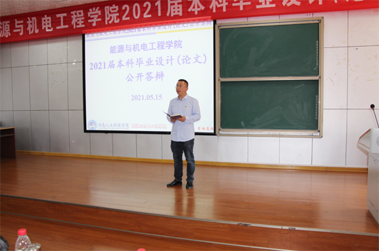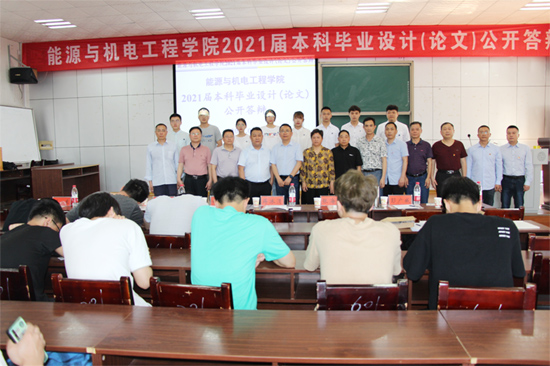 为进一步加强毕业设计(论文)的质量监控,强化答辩环节的规范化管理,提高学生毕业设计(论文)的质量,5月15日上午,能源与机电工程学院在同德楼601举行了2021届毕业设计(论文)公开答辩会。学院领导、指导老师、毕业生和部分低年级学生参加,学校教务处处长向国红教授、质量监控与发展规划处处长蒋冰清教授指导了本次毕业答辩工作,会议由学院副院长伍铁斌主持。