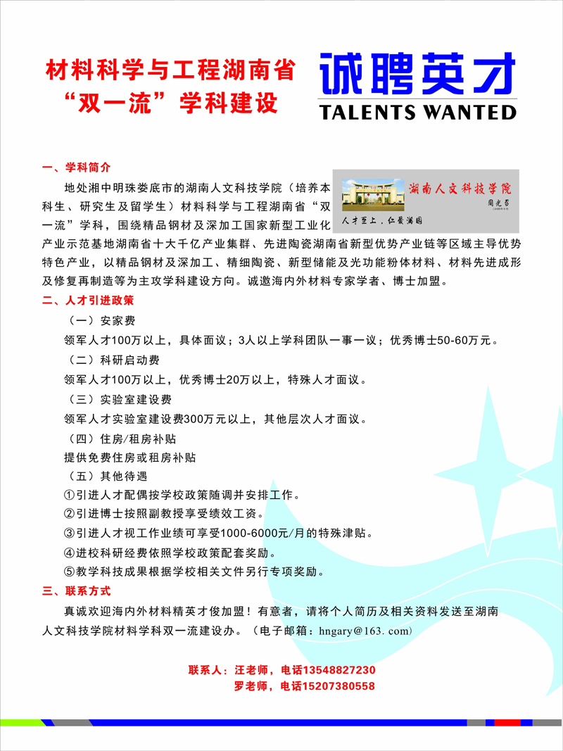 材料科学与工程湖南省“双一流”学科建设诚聘英才