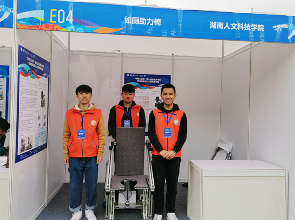 第九届全国大学生机械创新设计大赛决赛现场评审,于2020年11月20日至11月22日在四川省成都市西南交通大学犀浦校区举行。共有华中科技大学、北京航空航天大学、哈尔滨工业大学、西安交通大学等全国120所高校的181件作品到现场参加决赛。由我院邓岭、李碧波老师指导,李程、石建洲、王顺祥、王子扬和粟亮5名同学设计制造的“如厕助力椅”参赛作品斩获大赛一等奖,同时,该作品在全国大赛组委会组织的网络投票活动中被评选为“最具人气作品”。本届全国大赛中,湖南省赛区从参赛的253件作品中推荐23件参加国赛,其中湖南省有5件作品获国家一等奖。