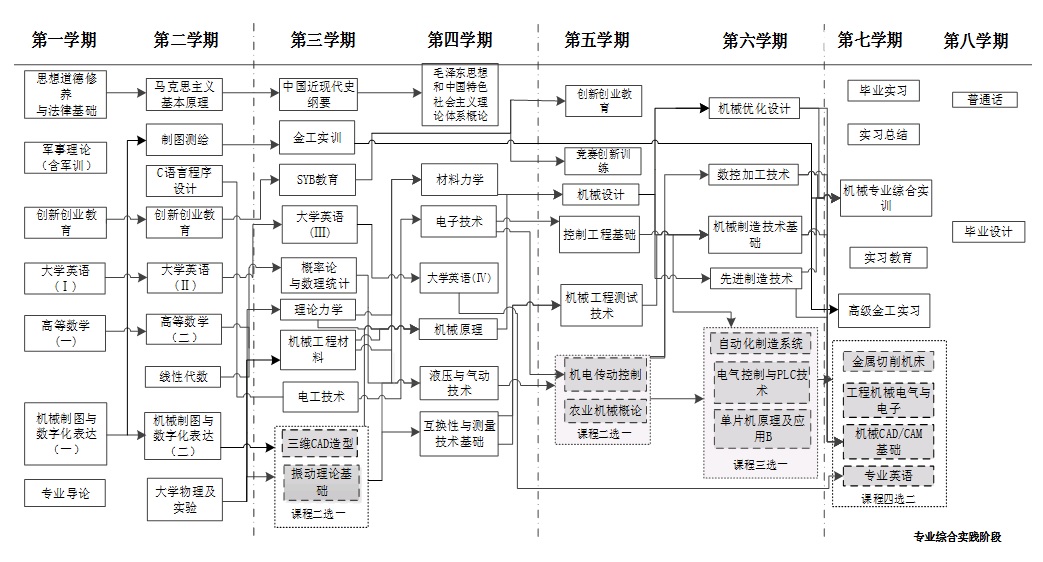 机械制图与数字化表达、机械原理、机械设计、控制工程基础、液压与气动技术、机械工程测试技术、互换性与技术测量、机械制造技术基础、机械优化设计、数控加工技术、先进制造技术等。