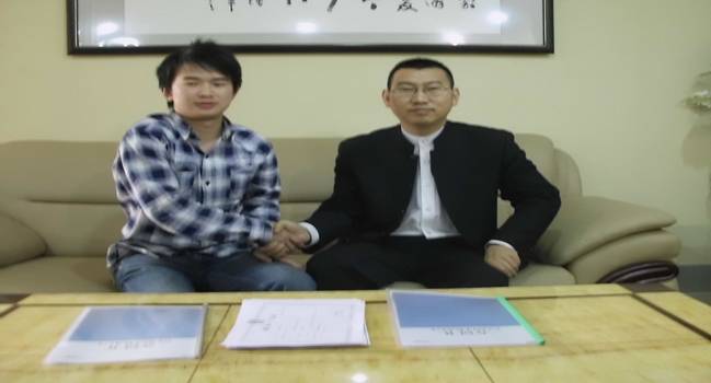 0738团购网总经理杨可政与郑州我惠集团董事局主席沙兴增签约时合影