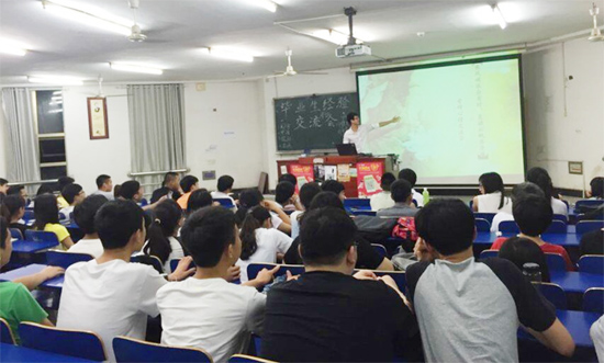 童浩第二个登台,他进入了理昂新能源股份有限公司工作。他给同学们介绍了在理昂公司实习的相关经历,解答了首届理昂班学生的许多疑问,也为低年级学生呈现了鲜活的在理昂工作和生活的画面。整个讲演过程精彩纷呈,同学们都听的津津有味。