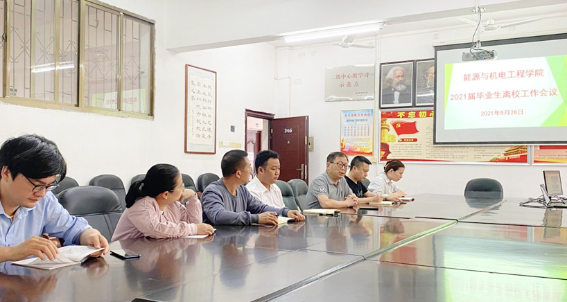 为了帮助2021届毕业生顺利办理离校手续,抓住离校的关键时期做好就业推荐和就业率统计等相关工作。5月28日下午15点,能源与机电工程学院组织2021届毕业班班主任召开了毕业生离校工作会议和就业工作推进会。学院党总支书记谢常清、院长胡东、党总支副书记石海、副院长伍铁斌及全体辅导员参加会议。