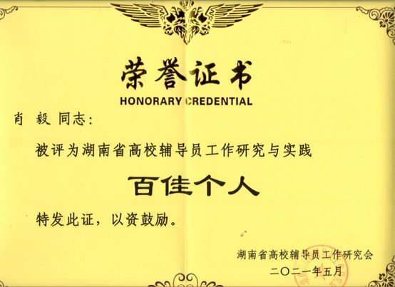 肖毅:男,中共党员,在读博士,自2009年12月起,一直坚守在辅导员岗位上,先后担任过学院招就专干、学生党支部书记、团总支书记、学工办主任等职。肖毅老师信念坚定、敬业奉献,将热心、爱心、细心、耐心、责任心的“五心”工作原则贯穿始终,服务于学生成长成才。担任学院团总支书记期间,学院团总支获评2018年度湖南省“五四红旗团总支”,2017年度娄底市“五四红旗团总支”荣誉称号。2020年湖南省第二批“三全育人”综合试点改革院(系)项目主要参与人,主持了湖南省辅导员专项课题等7项省、校级思政科研项目,参与思政课题3项,发表思政论文3篇;先后获评湖南省暑期“三下乡”优秀指导者、湖南省高校辅导员研究与实践先进个人、湖南省高校消费扶贫营销大赛优秀指导老师、娄底市“优秀共青团干部”、学校“优秀党务工作者”、“优秀共产党员”、“学生管理工作先进个人”等荣誉称号;2020年被推选参评湖南省“向上向善好青年”和湖南省辅导员年度人物;2019年辅导员工作优秀事迹被湖南日报《新湖南》、《华声在线》、今年会官微等媒体报道。