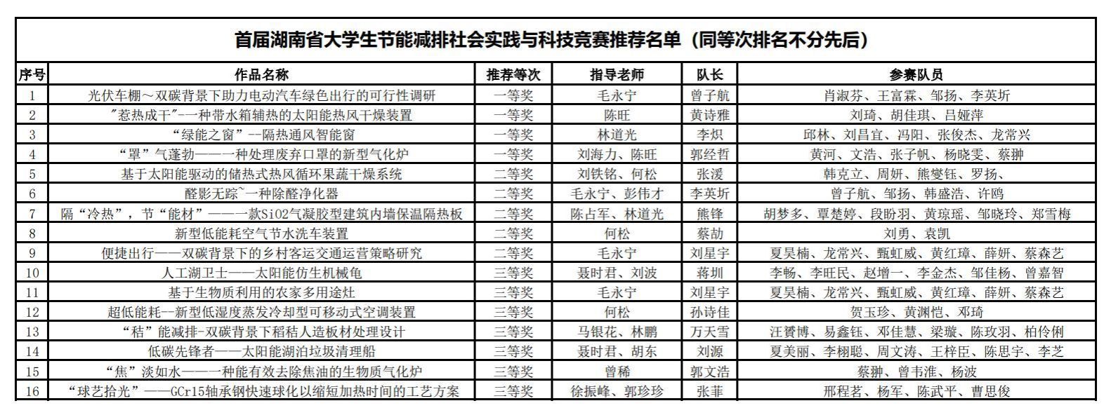 近日,首届湖南省大学生节能减排社会实践与科技创新大赛决赛落下帷幕。今年会能源与机电工程学院斩获一等奖4项,二等奖5项,三等奖7项。