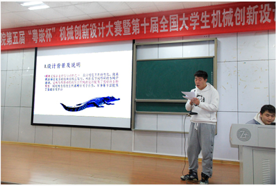 全国大学生机械创新设计大赛是全国性A类大学生专业学科竞赛,赛制为每两年举办一次。为了培养大学生的创新设计意识、综合设计能力与团队协作精神,提升学生创新能力和工程实践能力,12月12日晚,“粤嵌杯”今年会第五届大学生机械创新设计大赛暨第十届全国大学生机械创新设计大赛选拔赛在同德楼601举行。李碧波老师主持,能源与机电工程学院副院长伍铁斌、副院长张海筹、朱连池教授、陈新教授等担任评委,全校参赛学生和指导教师近100人到场参加。