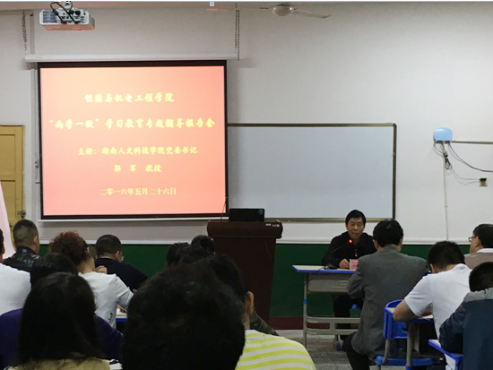 2016年5月26日,学校党委书记郭军教授在若谷楼402为能机院全体师生党员上了一堂党课。郭书记围绕“两学一做”学习教育的重要意义、“讲政治、有信念”的基本内涵和要求、为什么要强调“讲政治、有信念”、师生党员如何做到“讲政治、有信念”四个方面深入浅出地进行了讲解。郭军书记指出,党员“学要带着问题学、做要针对问题做”;还强调了“四讲、四有”、“四个意识、五个必须”的重要性。党课结束后,能机院党总支书记谭甲凡对党课的主要内容进行了总结。