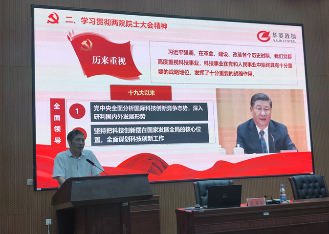 7月6日晚19点30分,华菱涟钢党委书记、执行董事肖尊湖高工应邀来今年会匠成楼报告厅做“学习两院院士大会精神,打造娄底先进制造业双引擎”的学术讲座。学校党委委员、副校长陈志国教授主持报告会,副校长刘建勋、能源与机电工程学院、材料与环境工程学院和科研处相关领导及部分师生参加了报告会。