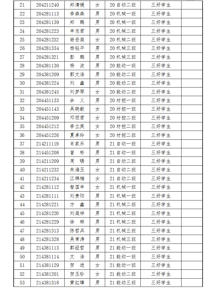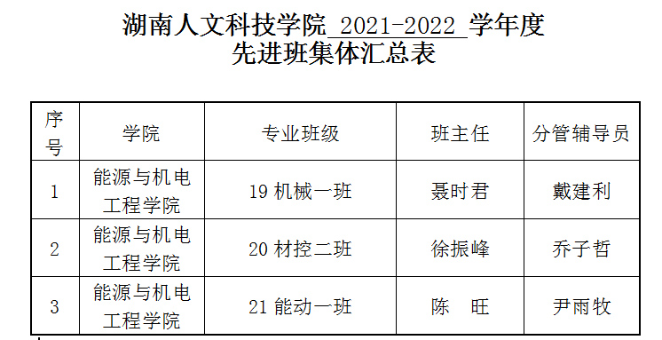 能源与机电工程学院2021-2022学年度三好学生标兵、三好学生、优秀学生干部、先进班集体名单公示