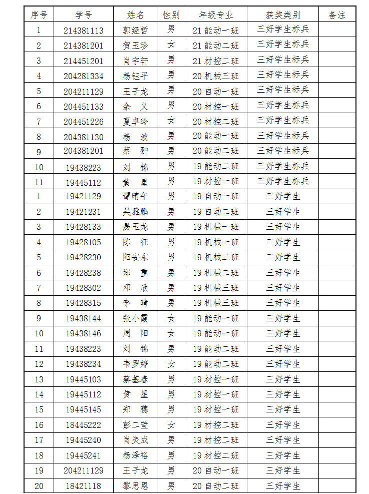 按照学校统一安排,根据《今年会关于做好2021~2022学年度“三好学生(标兵)”“优秀学生干部”“先进班集体”评选工作的通知》的评定条件,本着公平、公正、公开的原则,经学院多方面认真评比与研究,初步确定2021-2022学年度三好学生标兵、三好学生、优秀学生干部、先进班集体名单。