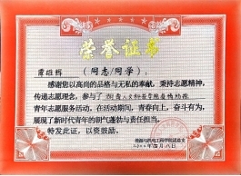 2022年参加学校疫情防控青年志愿者活动并获荣誉证书