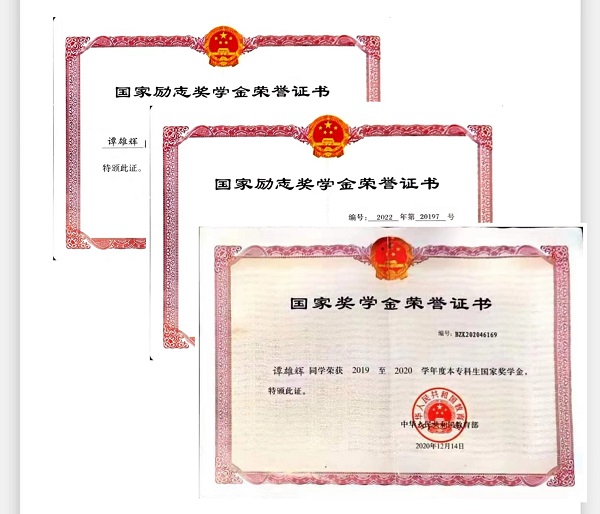 在本科四年里,他除了收获了扎实的专业知识外,还收获了珍贵的同学情、师生情。大学四年,他的成绩一直稳居专业第一,积极参与各类学科竞赛并取得优异成绩。面对身边同学提出的问题,他总是耐心的回答,遇到特别难的问题,他甚至还通过创建学习通课程为同学们进行视频直播讲解。“谭雄辉真的是一个特别真诚耐心的人。”身边人经常这样形容他。除了收获知识和友情外,他还收获了一段师生情。他的班主任———戴建利老师。戴老师对于学生的关怀之细、之深另他印象深刻。戴老师经常下男寝和班级男同学进行交流,了解班里同学的最近情况,特别是心理问题,并进行耐心的疏导。