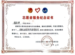 谭雄辉志愿服务证书