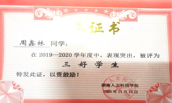 2019年获三好学生