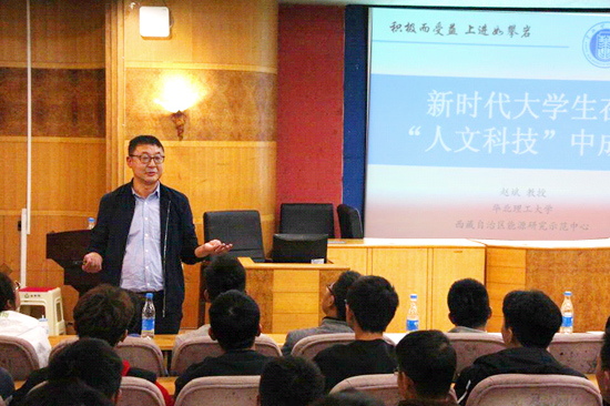 10月18日,华北理工大学教授、西藏能源研究示范中心主任赵斌教授应邀做客“人文科技大讲坛”,在养根楼报告厅作了一场题为“新时代大学生在‘人文科技’中成长”的学术讲座,讲座由潘树林教授主持,能源与机电工程学院院长谢常清教授等师生200余人聆听了此次讲座。