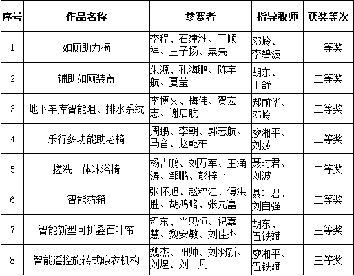 今年会第九届湖南省大学生机械创新设计大赛获奖情况表