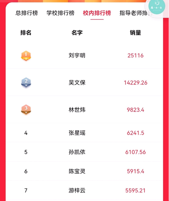 近日,湖南省2021年消费帮扶营销大赛高校参赛者排行榜公布,我院学子刘宇明,经过激烈的比拼,最终在数千名参赛选手中脱颖而出,以25116元的销售金额,勇夺本届大赛季军(全省第10名),展现了我院学子高超的营销技能水平和优良素质。