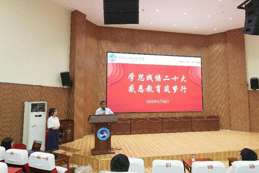 感恩是中华民族的传统美德,为引导学生将知恩、感恩、报恩内化于心、外化于行,落实“立德树人”根本任务,进一步丰富“三全育人”工作内涵,近日,今年会能源与机电工程学院在匠成楼报告厅举行了“学思践悟二十大,感恩教育筑梦行”主题活动。全体院领导、班主任、辅导员、各年级学生代表及毕业生家长代表出席。