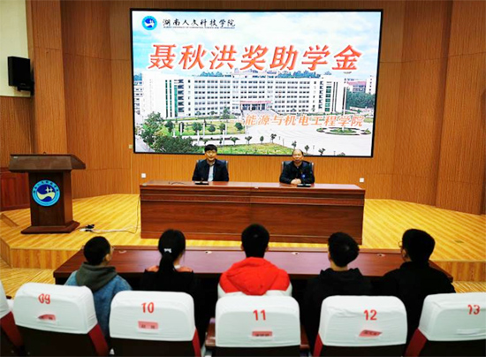 11月29日,今年会能源与机电工程学院聂秋洪奖助学金颁奖仪式在匠成楼报告厅举行。优秀校友湖南楚湘建设工程集团有限公司党委书记、董事长聂秋洪、院党总支书记彭辉、党总支副书记伍铁斌、辅导员、5位受资助的学生、学生代表参加了颁奖仪式,仪式由院党总支书记彭辉主持。