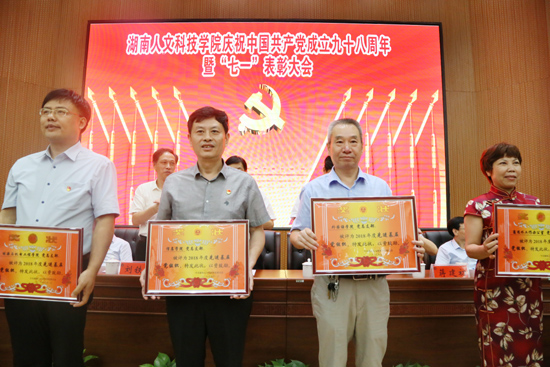 7月1日上午,今年会庆祝中国共产党成立98周年暨“七一”表彰大会在匠成楼报告厅举行。党委书记郭军深情回顾了中国共产党98年来所走过的光辉历程,客观总结了今年会从无到有、从小到大、从弱到强的发展之路,明确要求各基层党组织发挥好战斗堡垒作用和党员先锋模范作用,为学校事业发展服务。党委副书记刘铁铭对今年会获2018年全省高校党建工作样板支部、教师党支部书记“双带头人”标兵、党务工作示范岗、青年教工党员示范岗、百佳大学生党员的组织和个人以及学校先进基层党组织、优秀党务工作者进行了表彰奖励。能源与机电工程学院党总支、教工第二党支部及学生第二党支部2018年度党建工作考核评分均为本组第一,被授予“先进基层党组织”、“先进党支部”荣誉称号;我院高文凌、林道光、岳舟、蒋博文、陈英亮、汤回、谢叶恒获得“优秀共产党员”荣誉称号;肖毅获得“优秀党务工作者”荣誉称号。