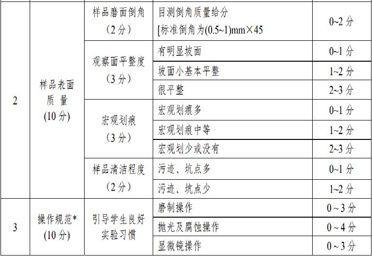 现场操作扣分标准 (按预磨、抛光及腐蚀、显微镜观察三个环节分别评定;每一环节出现以下每4 类情况只扣分一次):