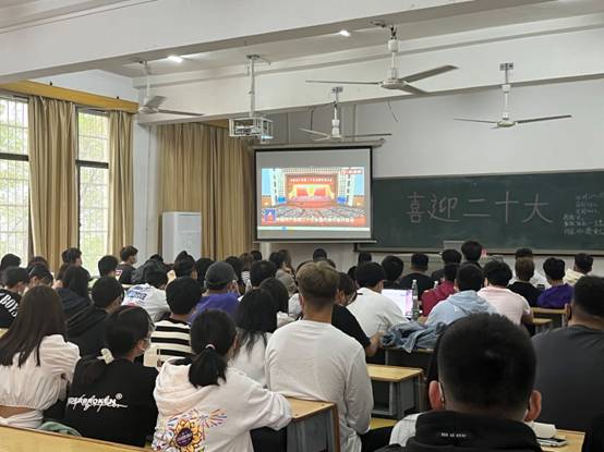体育学院学生在博达楼教室集中观看党的二十大开幕式