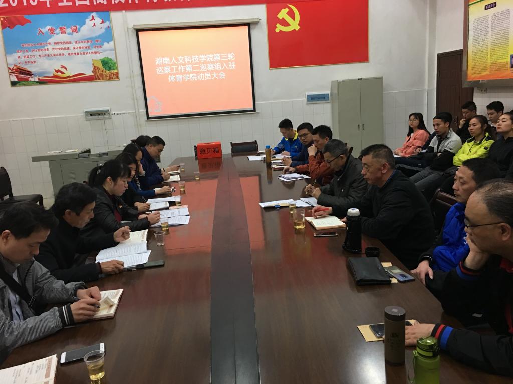 根据学校党委统一部署,2019年4月29日,学校第三轮巡察工作第二巡察组在体育馆会议室召开了体育学院巡察工作动员会。会前,巡察组主要负责人与体育学院党总支书记蒋毅和院长刘玉江召开了巡察工作见面沟通会。