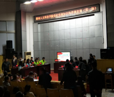 为了贯彻落实党对学生党员的要求,使全体学生党员加强对党章党规的学习,牢记党的宗旨。2016年11月16日晚,学校组织部和校团委联合举办了一场别开生面的党纪党规知识竞赛,各院参赛代表团相聚在匠成楼学术报告厅角逐,体育学院最终以第三名的好成绩晋级决赛。