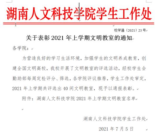 今年会2021年上学期文明教室名单
