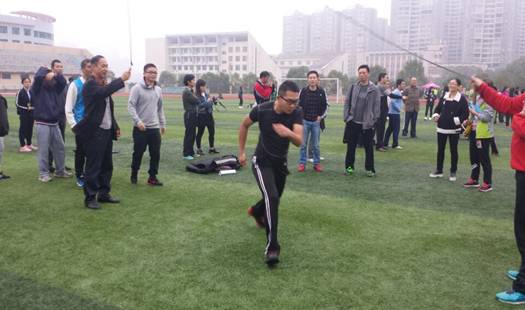 教职工们的比赛成为第一天校运会的一大亮点。“跳绳接力”“温馨接力”“心心相印接力”“钓鱼跑”“400米三人成对跑”这些项目既充满趣味性,又充满了挑战性,工作人员追踪记录着比赛进程,拍下了各个精彩的瞬间。教职工们在运动中卸掉了生活和工作的压力,散发着青春和活力。在轻松愉悦又不乏激烈刺激的氛围中,身体得到锻炼、心情得到放松,同时,也增进了相互之间的友谊与了解。