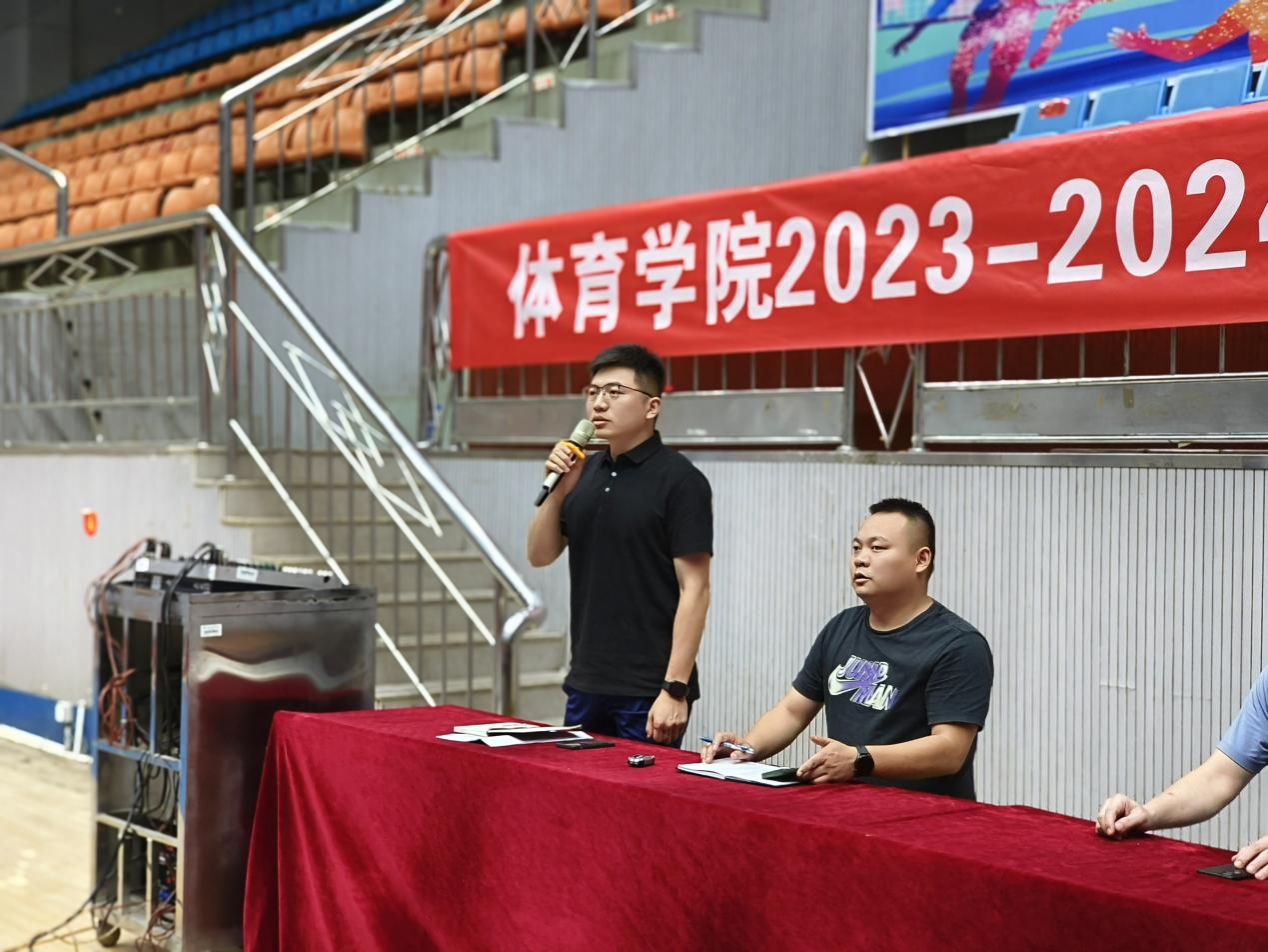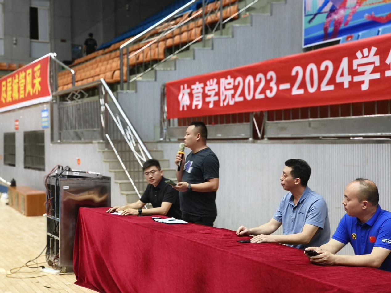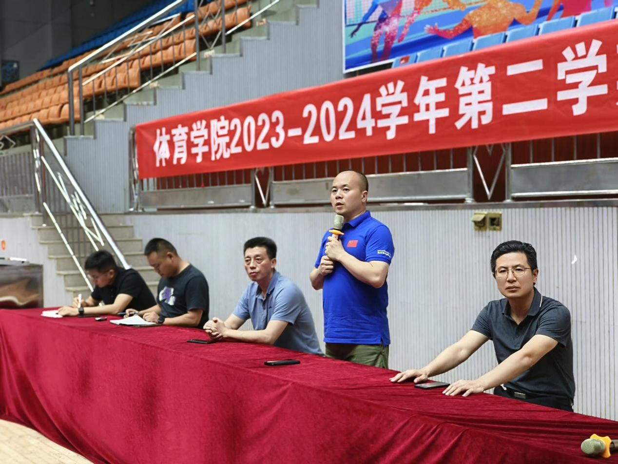 2024年6月28日晚19:40,体育学院开展了期末学生管理工作会议暨2023-2024学年第二学期诚信考试动员大会。对期末和暑期学生管理工作进行了安排并重点强调了诚信考试的纪律要求。学院党总支书记曾黎、院长周惠新、副院长陈勤、副院长董植寿、党总支副书记肖毅出席了本次会议,全体辅导员和全院学生共同参与。