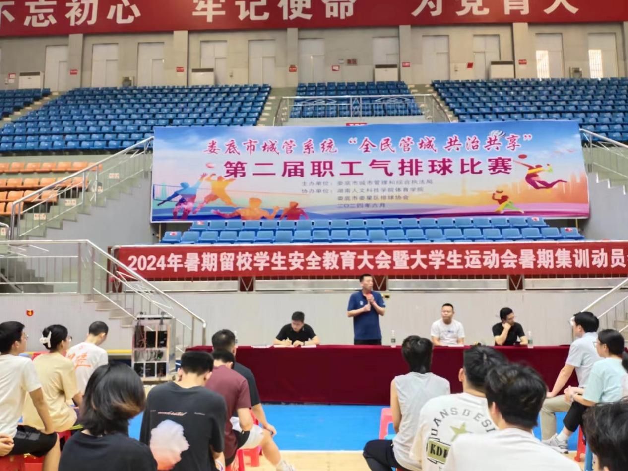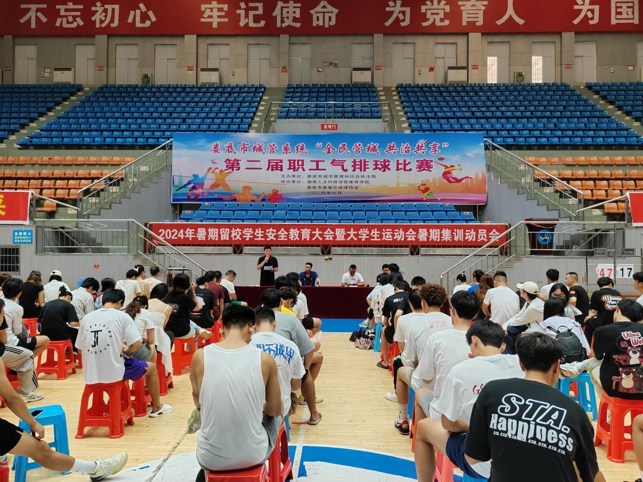 2024年7月4日上午10:00,体育学院开展了2024年暑期留校学生安全教育大会暨大学生运动会暑期集训动员大会。院党总支书记曾黎、院长周惠新、副院长陈勤、副院长董植寿、院党总支副书记肖毅出席了本次会议,全体辅导员、带队老师及全体暑期留校学生共同参与。