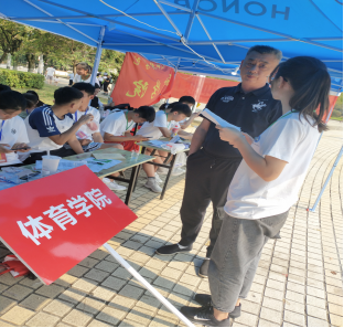 早在三天前,我院就着手布置迎新活动,对新生引导和安排流程进行了统一规范。学生会同学制作了精美的展板展示我院活动、风采及入学日程安排作为指引辅助,教学楼和宿舍楼上也悬挂起“体育学院欢迎您”的温馨横幅。