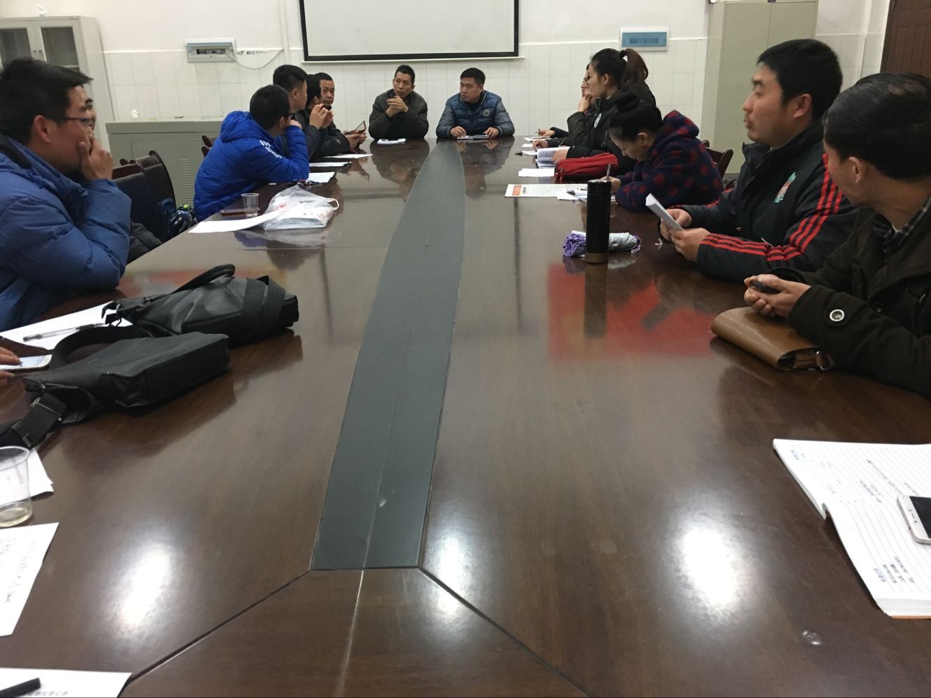 体育学院于2018年1月5日下午5点在体育馆会议室召开了班主任工作交流会议。本次会议由党总支副书记谢嘉主持,蒋毅书记做总结,全体辅导员与班主任参加了会议。会议通报了三起火灾的情况,要求班主任召集学生开一场班会,宣传消防安全知识,提高消防安全意识。同时要求班主任下寝进行安全排查。会议就如何整改寝室卫生,贷款催缴及零欠费等工作进行讨论。