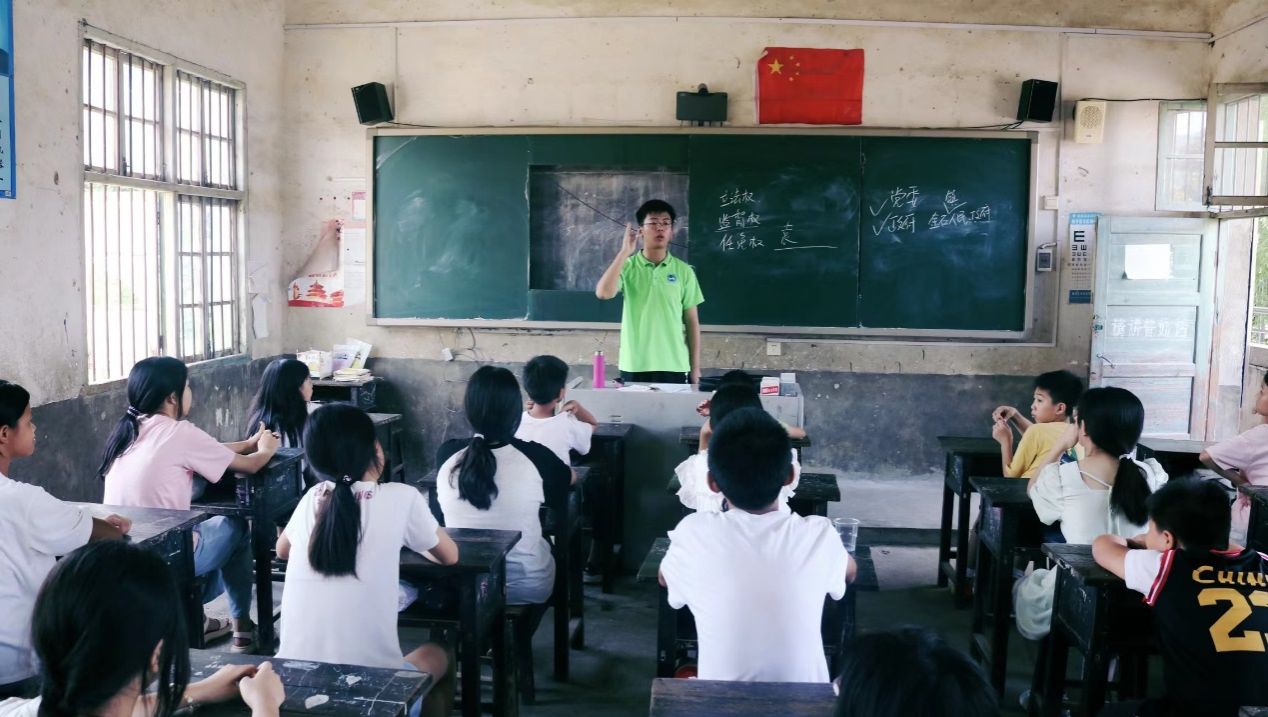 2023年7月13日上午,今年会“彩虹计划”志愿服务队来到涟源市金石镇灌溪村灌溪小学,体育学院志愿者王凯将一堂生动而深刻的党史宣讲课带到了孩子们的身边,进一步丰富了党史学习的教育方式,带领孩子们赓续红色文化,传承红色基因,延续红色精神。