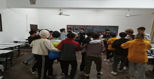 首先主持人对此次团体辅导活动进行简单讲解。团体辅导是希望大家能够更加团结,通过活动能够将自己内心的真实想法大胆说出来。两位部长主持了击鼓传花游戏,同学们上台说出自己步入大学的感受,通过这个游戏很多同学都讲述了踏入大学内心的一些想法。其次通过数字抱团、抢凳子这两个游戏,不仅增强了同学之间的团结,还促进了两个班级之间的友谊。最后学工办主任周元玲对本次活动的获胜者给予奖励。