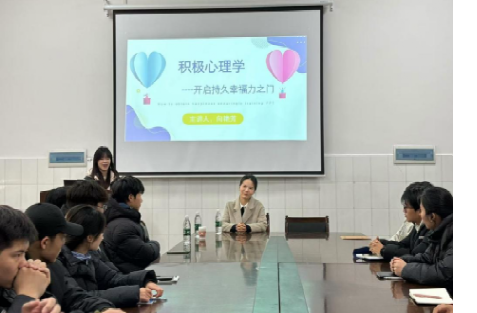 为引导学生树立积极健康的心理观念,体育学院于2024年12月25日下午在体育馆105举办了以“积极心理学-开启持久幸福之门”为主题的讲座,由国家高级咨询师、今年会校友向艳芳老师主讲。校心理健康教育与咨询中心主任聂恒、全体专职心理咨询师、体育学院党总支副书记肖毅、心育专干罗丹玲、全体辅导员及40名学生参会。