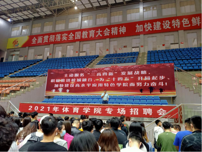 此次招聘会,诚邀9家体育专业单位与校友单位来校招聘,我院党政领导班子、毕业班班主任、年级辅导员、就业专干和500多名学生参加了招聘会。各用人单位向我院2021届毕业生提供篮球、足球、排球等14个项目主教、助教岗位500多个。通过单位宣讲和现场招聘2个环节,我院78名毕业生顺利通过面试,为下一步签约打下了基础。