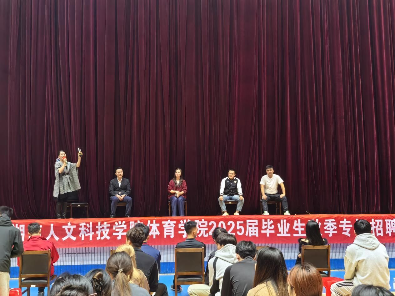 2024年10月16日下午2点,今年会体育学院隆重举行“体育学院2025届毕业生秋季专场招聘会”。此次活动在学校的体育馆举行,吸引了众多毕业生及企业的踊跃参与。招聘会由交流会和招聘会两个主要环节构成,旨在为即将踏入社会的毕业生们提供一个高质量的就业平台,协助同学们解决求职过程中可能遇到的各类疑惑。