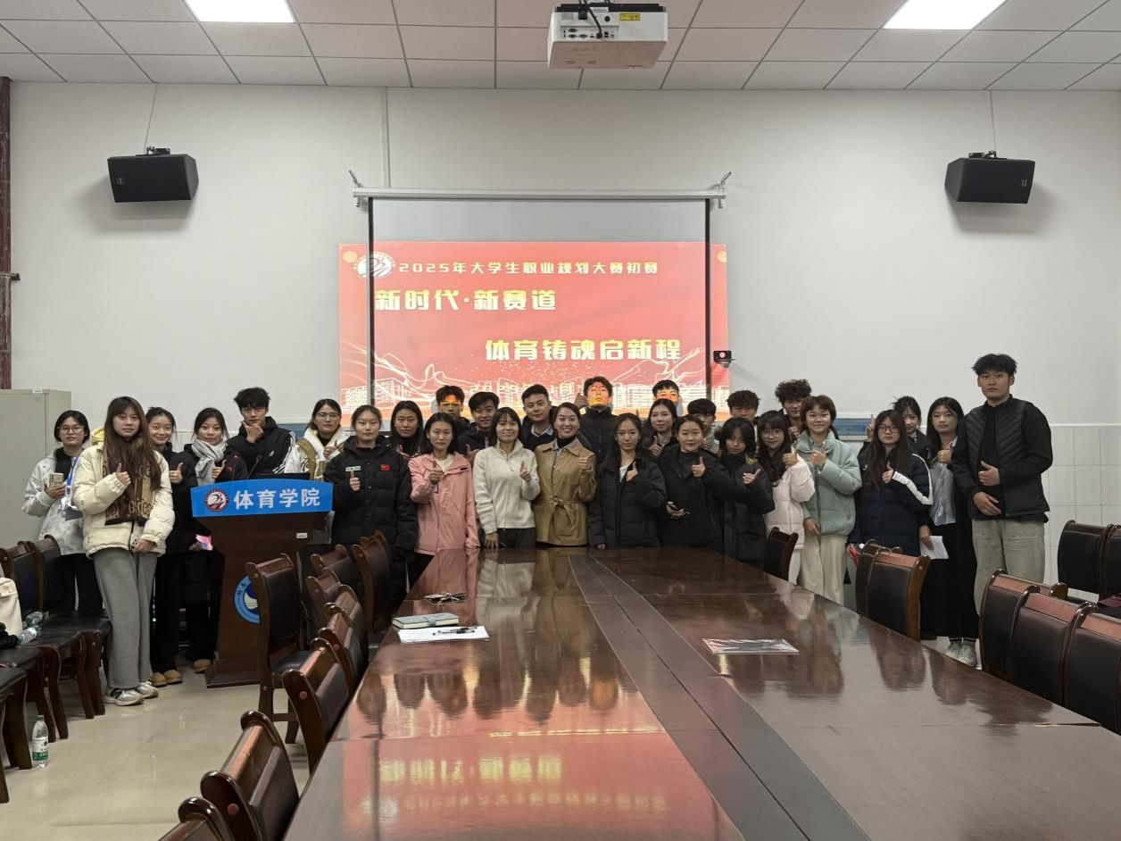 为引导体育专业学子在新时代职业赛道上找准定位、筑梦前行,11月18日晚,体育学院以“新时代新赛道,体育铸魂启新程”为主题的2025年大学生职业规划大赛在学院会议室成功举办。学工办全体辅导员与专任教师王锋共同出席赛事。